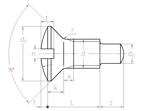 開槽半沉頭柱端螺釘 Slotted Raised Countersunk Head Screws with Full Dog Point |
